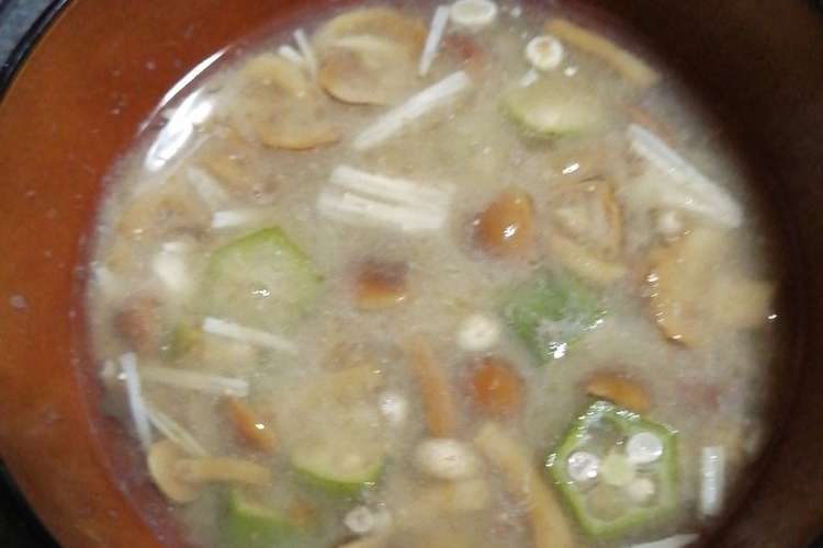 私の好きなオクラなめこエノキの味噌汁 レシピ 作り方 By 松潤love クックパッド